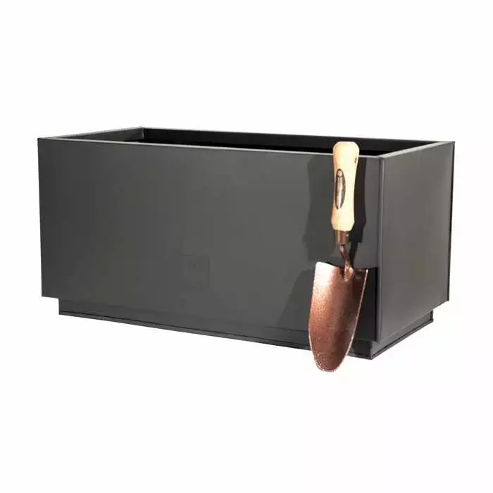 L60cm Zinc Galvanised Kick-Bottom Trough Planter in Black by Primrose®