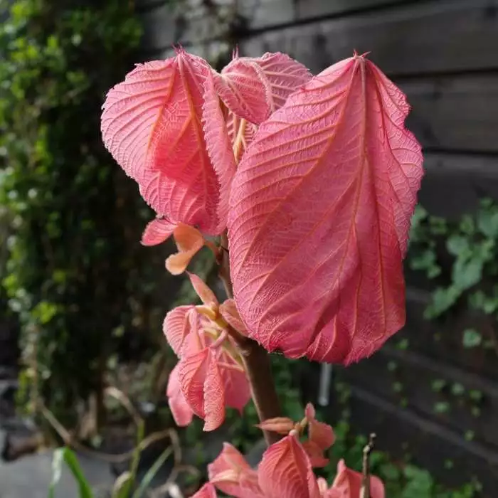 A suckering deciduous shrub with colourful heart-shaped leaves . Position: partial shade Soil: moist, well-drained soil Rate of growth: average Flowering period: May to June Hardiness: frost hardy (may need winter protection) A deciduous flowering shrub with suckering roots grown for its large and heart-shaped foliage. Emerging a vivid bright pink in spring, the leaves gently fade to pale pink in summer, before re-igniting in autumn when they turn a multitude of fiery hues. Alchornea’s stems shoot from ground level, growing well in sheltered compact gardens or mixed borders that need height and colour. Great for sheltered banks where the suckering habit can be used to natural effect. Clusters of tiny, red and green flowers appear along the stems in summer. Garden care: Pruning isn’t necessary, but you may want to remove the suckers in early spring to prevent them from spreading. Water well until established and apply a thick layer of mulch to protect the roots in winter. Shelter from cold winds.