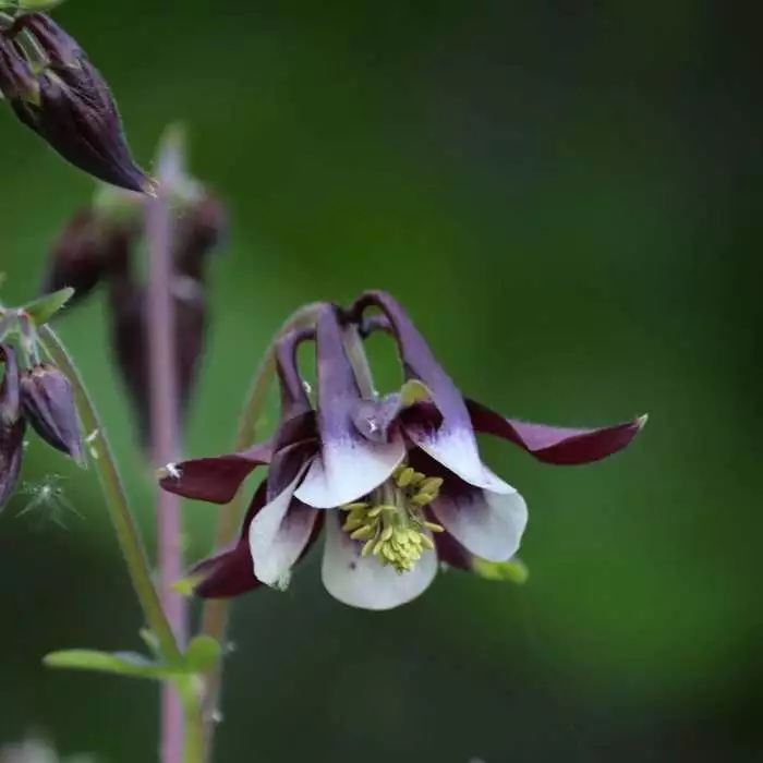 A cottage garden herbaceous perennial seed with purple-black and white flowers . Position: full sun or partial shade Soil: fertile, moist, well-drained soil Rate of growth: average to fast-growing Hardiness: fully hardy The striking maroon-black bonnets of Aquilegia ‘William Guinness’ contrast superbly with the white corolla. The deep purple spurs of this ‘stout’ cottage garden perennial are carried on wiry stems, set above finely divided foliage. Perfect for en-masse in borders and shady woodland edges, this columbine also makes an attractive cut flower subject for an indoor vase. Growing instructions: In autumn, surface-sow on moist compost in small pots or seed trays and keep them in a greenhouse or cold frame at 15 to 20°C. Germination can be slow (up to 3 months) but seedlings should be thinned out as they grow on and over-wintered under glass before planting out after hardening off in spring. Alternatively, spring sowing can be undertaken as before, often without the need for heat. Sow: March to June or September to October Flowering: May to June