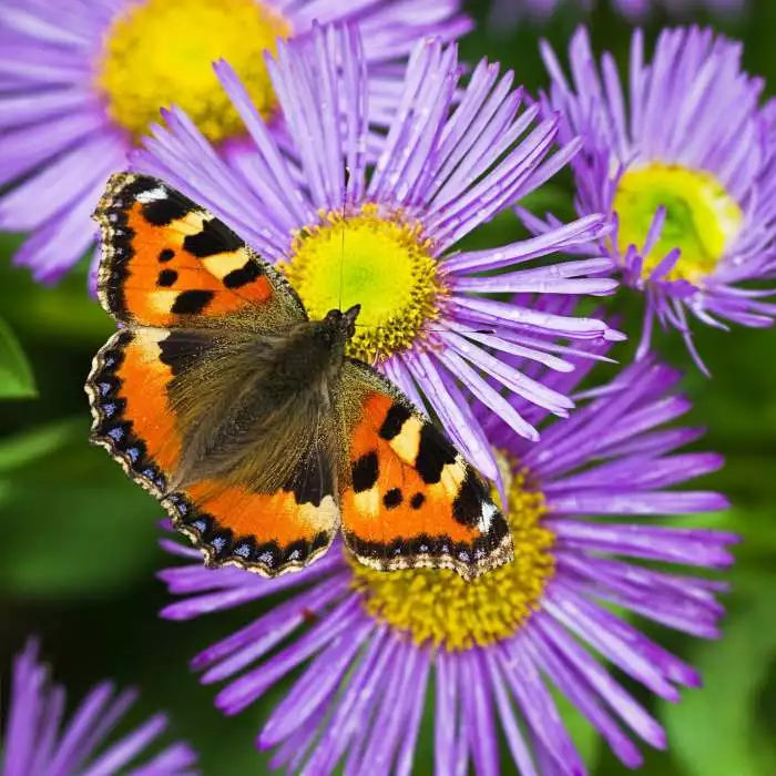 One of the stars of late summer. Position: full sun Soil: well-drained, moderately fertile soil Rate of growth: average Flowering period: August to October Hardiness: fully hardy For a long period throughout summer and autumn, this sturdy, neat plant is smothered with large (to 6cm wide) and showy, rich purple-blue flowerheads that have golden yellow centres. One of the best and most reliable asters, this cultivar has a good resistance to mildew. Ideal for adding late colour to the garden, it mixes well with other late flowering perennials such as Rudbeckias, Achilleas and Echinaceas. They also blend well with ornamental grasses for prairie style planting schemes. Garden care: Water regularly during dry spells and deadhead to prolong flowering. After flowering cut the flowered stems to the ground and apply a generous mulch of well-rotted garden compost or horse manure around the base of the plant.