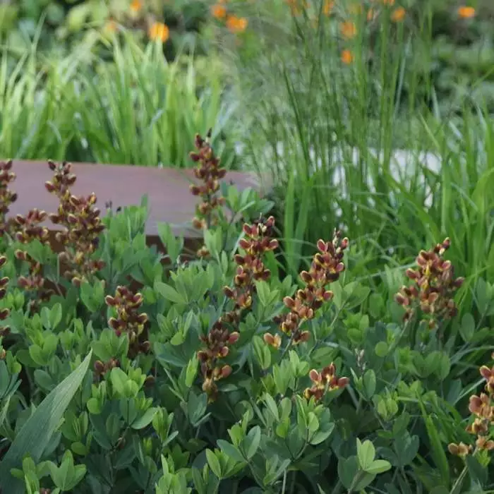 Unusual coppery chocolate flowers attractive to butterflies. Position: full sun Soil: well-drained, preferably sandy soil Rate of growth: average Flowering period: April to June Hardiness: fully hardy Who could resist these deliciously rich chocolatey flowers that are beautifully set off by the lush foliage. Used to great effect at the RHS Chelsea Flower Show 2016, the warm flowers work particularly well in copper toned planting schemes. Recently introduced and a more compact form than many other baptisias, this false indigo is perfect for a well-drained border or a dry, sunny bank as it will become drought tolerant once well established. Resist the temptation to cut the plant back in autumn as the seed-pods and slender stems look wonderful frosted in the winter garden. Garden care: Lift and divide large colonies in early spring if necessary, though they are best left undisturbed if you can since they develop deep tap roots which enable them to be more drought tolerant.
