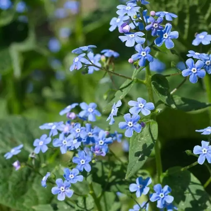 Good ground cover plant. Position: partial shade Soil: fertile, humus-rich, moist, well-drained soil Rate of growth: average to fast Flowering period: April to May Hardiness: fully hardy A valuable plant for clothing moist, shady areas of the garden. Mid to deep green heart-shaped leaves and sprays of tiny, intense-blue, star-shaped flowers from mid- to late spring. The attractive, heart-shaped leaves look great planted next to other front-of-border foliage plants, including pulmonaria and lamium. Garden care: Remove the faded flower-heads after flowering. Lift and divide the plant every two or three years in late autumn.
