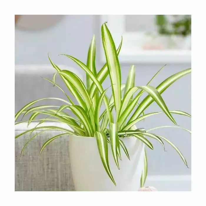 The classic spider plant. Position: bright but indirect light Soil: good potting compost Rate of growth: fast-growing Hardiness: tender (indoors only) Current height: approximately 20cm (+ or – 10% including the pot) Pot cover: choose a 14cm pot cover to give a good fit over the pot This houseplant is incredibly popular as it is so easy to grow – just place it in a well-lit spot, water, and watch it grow! As it matures it develops stems, each of which has a baby plant at its tip. These can be pegged down into compost, and when rooted the stem can be cut and you will have another plant – great for jumble sales or gifts for friends! Please note that the pot in the photograph is not supplied with the plant (which is sent out in a simple nursery pot). They do however make excellent potted plants, and if you wish to pot yours up, we do have a wide range of pots on our website to choose from. Home care: Water freely when in growth, but keep drier in winter. Mist the leaves every so often with water to increase humidity and make sure the winter temperatures stay above 8°C. Repot when it has outgrown its pot in winter.