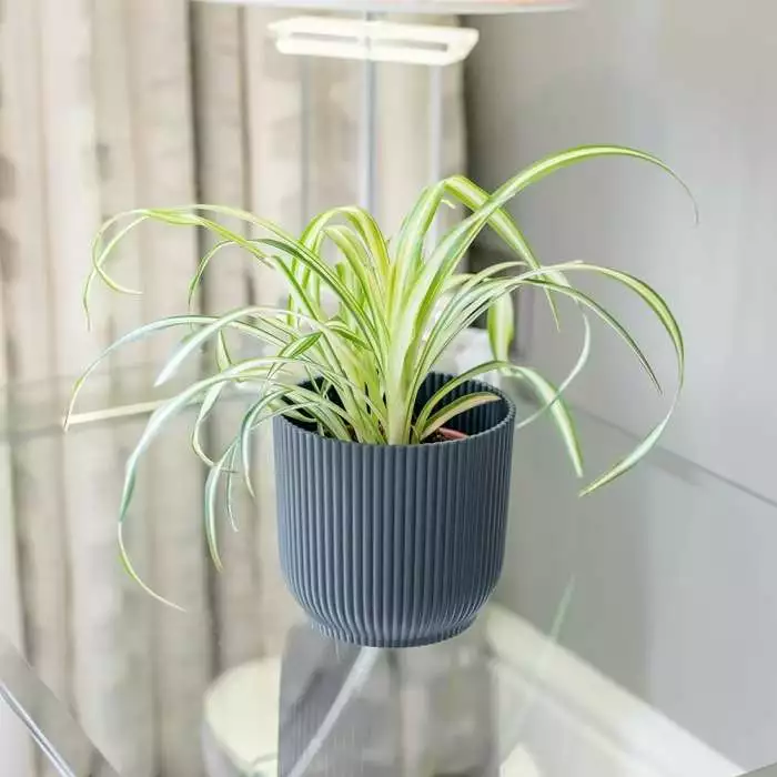 The classic spider plant. Position: bright but indirect light Soil: general-purpose potting compost Rate of growth: fast Hardiness: tender (indoors only) Current height: approximately 20cm (including pot) Pot cover: choose a 10.5cm pot cover to give a good fit over the pot This houseplant is incredibly popular as it is so easy to grow – just place it in a well lit place, water, and watch it grow! As it matures it develops stems, each of which has a baby plant at its tip. These can be pegged down into compost, and when rooted the stem can be cut and you will have another plant – great for jumble sales or gifts for friends! Please note that the pot in the photograph is not supplied with the plant (which is sent out in a simple nursery alternative), but we have a wide and wonderful range on our website to choose from. Home care: Water freely when in growth, but keep dryer in winter. Mist the leaves every so often with water to increase humidity and make sure the winter temperatures stay above 8°C. Repot when it has outgrown its pot in winter.