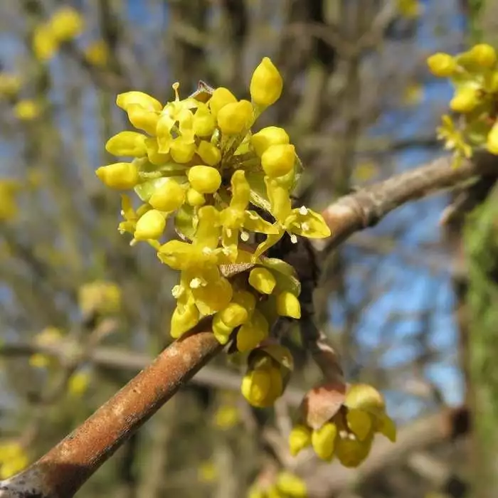 Lovely flowers followed by bright red fruits. Position: full sun or partial shade Soil: moist but well-drained soil Rate of growth: fast-growing Flowering period: January to February Hardiness: fully hardy Masses of tiny, acid-yellow flowers on bare stems in January and February, followed by bright red, late summer fruits, and dark green leaves, turning red-purple in autumn. This vigorous, spreading cornelian cherry is an excellent specimen tree for a woodland garden. It will happily grow in any well-drained soil in sun or partial shade alongside Lonicera fragrantissima and Galanthus nivalis for an early, fragrant display. Garden care: Incorporate a quantity of well-rotted garden compost or horse manure in the planting hole to improve the moisture-retentive qualities the soil. In early spring remove any misplaced or crossing branches and apply a generous 5-7cm (2-3in) mulch of well-rotted garden compost or horse manure around the base of the plant.