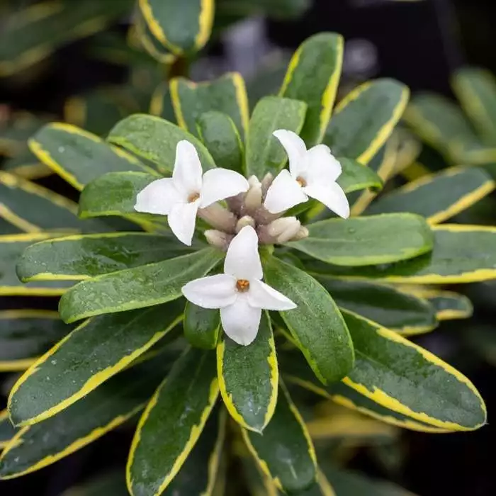 A prolifically flowering, scented evergreen shrub. Position: full sun or partial shade Soil: moderately fertile, well-drained, humus-rich soil Rate of growth: slow Flowering period: April to September Hardiness: fully hardy Rarely out of flower from spring to late autumn, ‘Summer Ice’ is a compact, rounded to mound-forming, semi-evergreen shrub. A gorgeous addition to the garden, its stems bear narrowly ovate, dark grey-green leaves that are edged with a fine creamy yellow band. The clusters of fragrant, pink-flushed, white flowers are divine! Garden care: Keep pruning to a minimum since the plant is very susceptible to die-back. Where necessary after flowering lightly trim back to remove misplaced branches and maintain a compact habit.