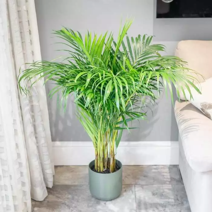 Attractive, graceful palm with many long narrow linear leaves. Position: bright but indirect light Soil: good potting compost Rate of growth: slow growing Hardiness: tender (indoors only) Current height: approximately 1m (+ or – 10% including the pot) Pot cover: choose a 20cm pot cover to give a good fit over the pot A graceful, attractive palm with closely growing upright stems and long arching linear leaves, that makes a handsome focal point for any room. Still one of the most popular houseplants and it’s easy to see why as it is so versatile and easy to look after. Please note that the pot in the photograph is not supplied with the plant (which is sent out in a simple nursery alternative), but we have a wide and wonderful range on our website to choose from. Home care: Water regularly through the growing season with soft water or rain water but let the surface of the soil dry out slightly before rewatering. Reduce watering through the winter months. These plants need humidity so mist the leaves regularly, or stand on a tray of damp pebbles. Although they like a warm atmosphere don’t place it near a radiator or heat source, and choose a brightly lit spot but not in direct sun.