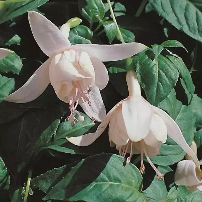 A trailing fuchsia bedding perennial with double blush pink and white flowers. Position: full sun or partial shade Soil: moderately fertile, humus-rich, well-drained Rate of growth: average to fast Flowering period: May to the first frosts Hardiness: frost tender (will need winter protection) A superb addition to the summer bedding display, ‘Happy Wedding Day’ is a trailing fuchsia, with lax, splaying stems that are dripping with fully double, blush pink to creamy white flowers from May to October. Fill your pots, window boxes and baskets with this and enjoy the display! Garden care: To encourage growth, pinch out the growing tips of young plants after the sixth or seventh pair of leaves. During the growing season water regularly, and apply a balanced liquid fertiliser each month. Protect plants from frost, and overwinter potted plants in a conservatory or greenhouse.