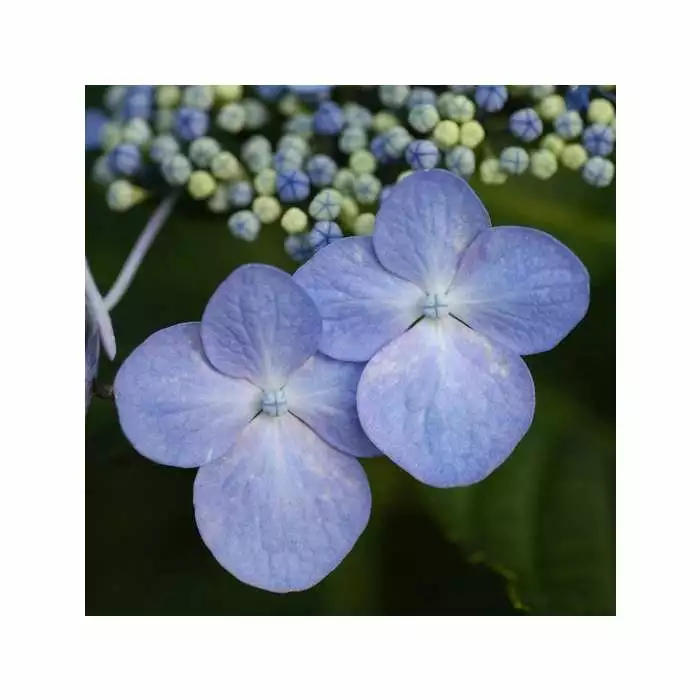 Blue or pink lacecap flowers. Position: full sun or partial shade Soil: moist, well-drained, moderately fertile, humus-rich soil Rate of growth: average Flowering period: July to August Hardiness: fully hardy One of the most popular lacecap hydrangeas, this has flattened heads of rich blue, mauve or pink flowers depending on the acidity (pH) of the soil. These appear from July to August over coarsely toothed, glossy, dark green leaves. It’s best in moist soil in partial shade and looks wonderful towards the back of a mixed or shrub border, particularly when planted with other hydrangeas. Please note that the flowers of this hydrangea may arrive with pink or pinkish tones in our nursery compost mix. Hydrangeas give their best blue flowers on acidic soils with a pH of 5.5. When grown on neutral to alkaline soil, the flowers will predominantly be pink, although you may also get blue or mauve blooms. To ensure that your hydrangea has blue-toned flowers, make sure the pH does not creep above 6.5. To lower the pH on neutral soils, treat the plant annually with a hydrangea flower colourant containing aluminium salts or lower the pH using soil acidifiers such as sulphur and sulphate of iron and adding composted material. Garden care: Hydrangeas do not like to dry out. In dry weather, soak the roots with a hose and the plant will usually recover. Remove faded flowerheads in spring after the danger of frosts, cutting back the flowered stems to a strong pair of buds. Take out misplaced or diseased shoots. Mulch young plants with a well-rotted manure or compost in spring. Once established, remove a quarter to a third of the shoots to the base of the plant.