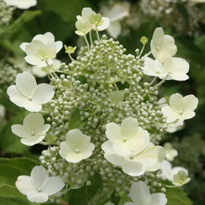 Outstanding cream flowers. Position: full sun or partial shade Soil: moist, well-drained, moderately fertile, humus-rich soil Rate of growth: fast-growing Flowering period: August to October Hardiness: fully hardy Conical clusters of creamy-white flowers in late summer and toothed, mid- to dark green leaves. This delightful, deciduous hydrangea is an excellent specimen plant for a large, sheltered shrub or mixed border. Later flowering than other varieties, it flourishes in sun or partial shade. The flower-heads can be picked for dried arrangements. Garden care: To enhance flowering prune hard in early spring, cut back the previous season’s shoots to within a few buds of the permanent, woody framework of the plant.