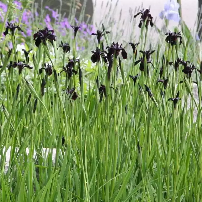 Deep purple flowers. Gorgeous beside water. Position: full sun or partial shade Soil: well-drained, moderately fertile soil Rate of growth: average Flowering period: May to June Hardiness: fully hardy Stunning, deep purple, velvety flowers with gold streaks on the falls appear from May to June above strappy, grey-green leaves. This clump-forming, beardless iris, related to the moisture-loving Siberian iris, makes an eyecatching feature in a boggy area of the garden, or beside water. Garden care: Incorporate plenty of well-rotted garden compost or manure into the planting hole. Do not allow the plant to dry out.