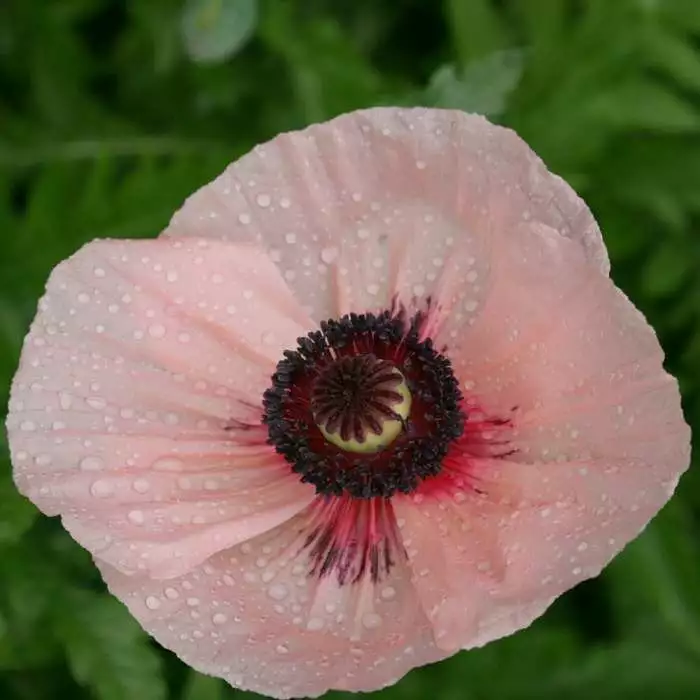 A salmon pink flowering herbaceous perennial. Position: full sun Soil: moist, well-drained Rate of growth: fast-growing Flowering period: May to July Hardiness: fully hardy The award-winning ‘Karine’ has large, shallow-cupped, salmon-pink flowers flushed with a beetroot-purple centre and stunning dark purple stamens. Roughly textured, deeply divided leaves provide a wonderful contrast to the delicate, papery blooms. In flower from late spring to mid-summer, this herbaceous perennial would look great planted with Geranium ‘Orion’ or dark foliage plants such as Pittosporum ‘Tom Thumb’. Garden care: Cut back to ground level after flowering. Once established, lift and divide large clumps in autumn.