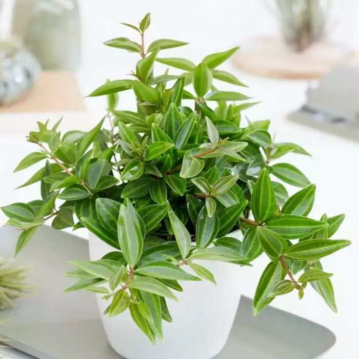 Attractively variegated foliage. Position: bright light Soil: good potting compost Rate of growth: average Hardiness: tender (indoors only) Current height: approximately 20cm (+ or – 10% including the pot) Pot cover: choose a 14cm pot cover to give a good fit over the pot Forming on trailing stems, the leaves of this easy to grow house plant are primarily a rich green, but each one has a network of white veins, which gives them a stripy look. It looks really pretty when tumbling over the edges of a pot – and is ideal for placing on shelves or side tables. Please note that the pot in the photograph is not supplied with the plant (which is sent out in a simple nursery pot). They do however make excellent potted plants, and if you wish to pot yours up, we do have a wide range of pots on our website to choose from. Home care: Keep it in a semi-shaded or bright spot with protection from direct sun and water moderately in summer – allowing the compost to get reasonably dry before repeating the process. Water sparingly in winter. Maintain temperatures above 10°C in winter.
