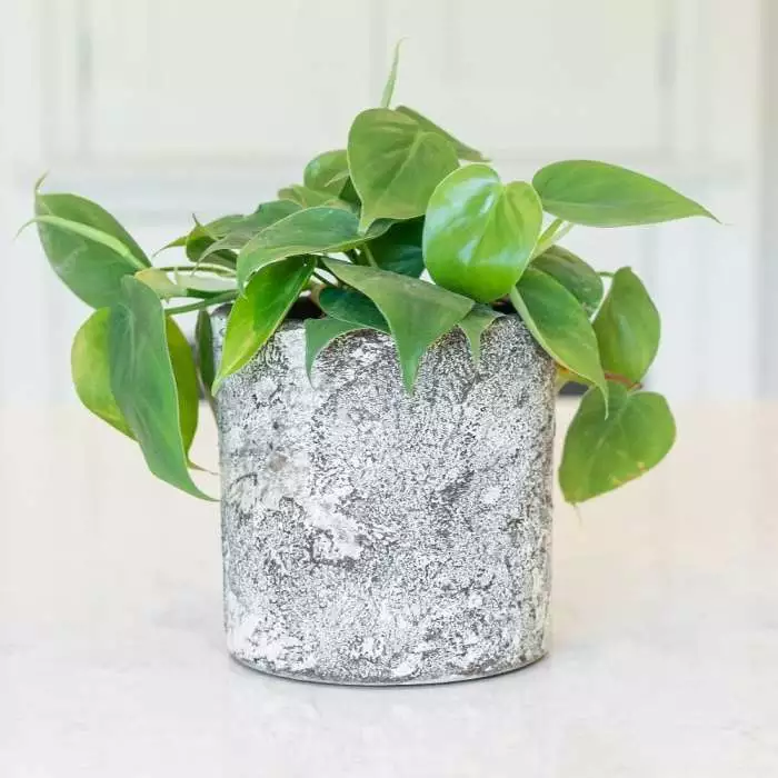 An attractive climber that comes with its own support. Position: bright filtered or indirect light Soil: general-purpose potting compost Rate of growth: fast Hardiness: tender (indoors only) Current height: approximately 15cm (+ or – 10% including the pot) Pot cover: choose a 14cm pot cover to give a good fit over the pot This is a fast-growing climber, but if the stems are not supported by a moss pole or trellis, they will cascade over the edges of the pot, eventually forming a soft green ‘curtain’. Its lustrous, heart-shaped leaves will get bigger and bigger (up to 30cm long) as the plant matures – and it’s super-easy to grow – which makes it great for the novice! Please note that the pot in the photograph is not supplied with the plant (which is sent out in a simple nursery alternative), but we have a wide and wonderful range on our website to choose from. Home care: Water freely when in growth, but keep drier in winter. Mist the leaves regularly with water to increase humidity and every so often put it under a cold shower to wash off the leaves. Make sure the winter temperatures stay above 10°C, and repot every couple of years.
