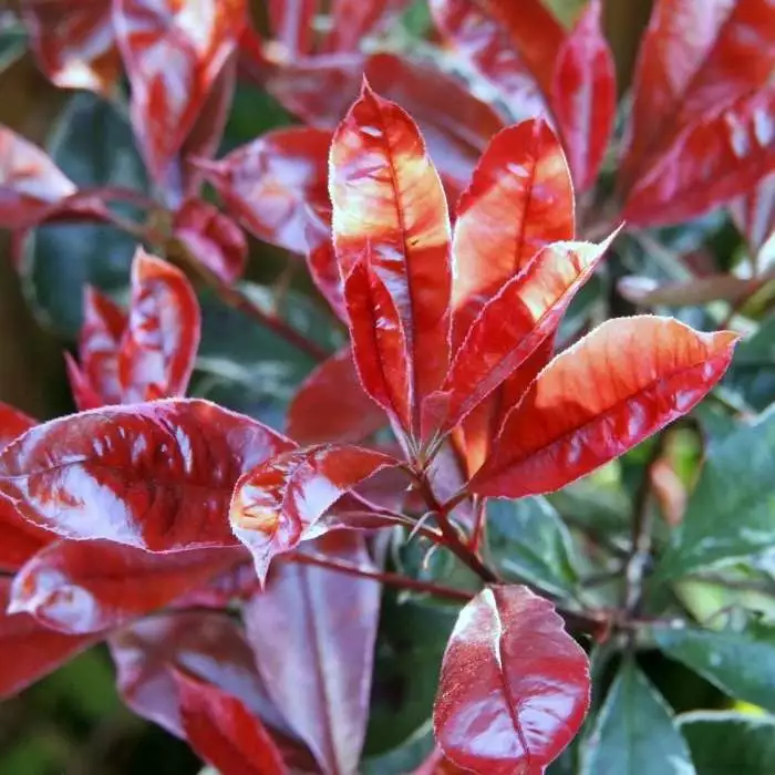Makes a wonderful hedge or screen. Position: full sun or partial shade Soil: most fertile, well-drained soils Rate of growth: average to fast growing Flowering period: April to May Hardiness: frost hardy (needs winter protection)The foliage of this tough, reliable and adaptable evergreen, emerges in a rich burgundy flush (a few shades darker than the much-loved ‘Red Robin’), but it quickly matures to a rich lustrous green. A recipient of an RHS AGM, it’s a good, strong-growing plant, and its while its upright habit makes it ideal for hedging, it will also make a handsome, stand-alone specimen. Garden care: To encourage a profusion of bright young leaves in late spring or summer shorten the stems of established specimens by up to 15cm (6in), to just above an outward-facing bud. Apply a generous 5-7cm (2-3in) mulch of well-rotted garden compost or manure around the base of the plant in early spring. Protect from excessive cold or waterlogged soils in winter.