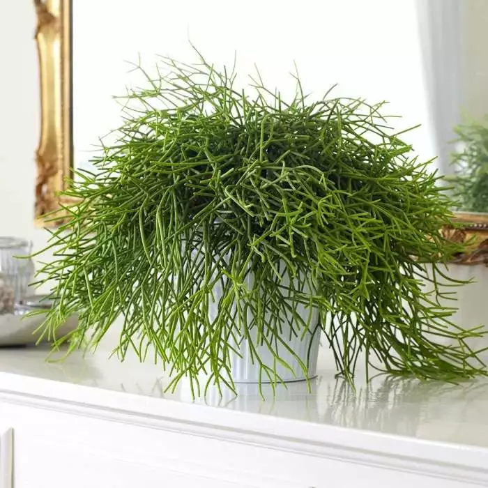 A shaggy-haired trailer. Position: bright but indirect light Soil: good potting compost Rate of growth: average to fast Hardiness: tender (indoors only) Current height: approximately 20cm (+ or – 10% including the pot) Pot cover: choose a 14cm pot cover to give a good fit over the pot Slender succulent stems form a hair-like shaggy hummock that will cascade over the sides of a pot or hanging basket. This unique plant may produce mistletoe-like berries when mature, but it is for the fab foliage that it is best-loved. Please note that the pot in the photograph is not supplied with the plant (which is sent out in a simple nursery pot). They do however make excellent potted plants, and if you wish to pot yours up, we do have a wide range of pots on our website to choose from. Home care: Water freely when in growth, but keep drier in winter. Mist the leaves regularly with water to increase humidity and make sure the winter temperatures stay above 10°C. Repot each year.