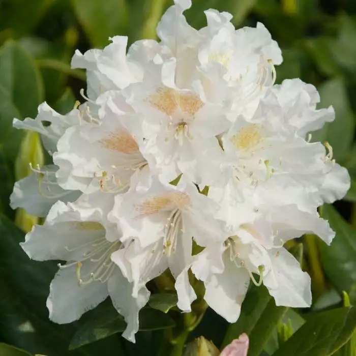 Masses of stunning, white blooms. Suitable for most soil types. Position: partial shade Soil: moist, well-drained, humus-rich, acid soil or ericaceous compost Rate of growth: average Flowering period: May Hardiness: fully hardyMarvellous full trusses of white, funnel-shaped flowers with yellow or greenish-brown markings in late spring and dark green leaves, retained all year. This lovely, old hybrid rhododendron is understandably popular, due to its tolerance of poor or near-neutral soil. Compact and robust, it’s ideal for growing on a boundary, for use as a windbreak or screen. Garden care: Avoid planting too deeply. Apply a generous 5-7cm (2-3in) mulch of leaf mould around the base of the plant each spring.