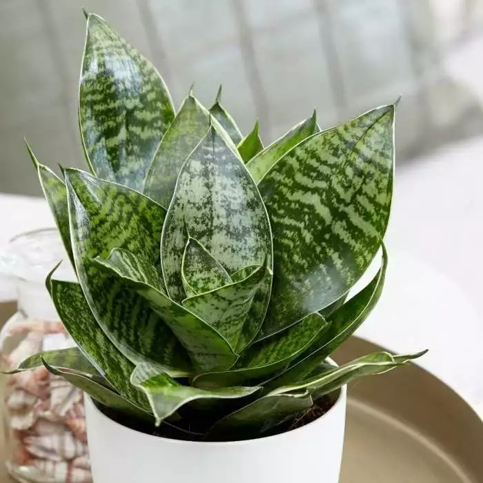 Tough and easy to grow. Position: ideally bright, with some full sun, but will also tolerate shade Soil: good potting compost Rate of growth: slow Hardiness: tender (indoors only) Current height: approximately 20cm (+ or – 10% including the pot) Pot cover: choose a 10.5cm pot cover to give a good fit over the pot Closely related to, but lower-growing than the more readily available mother-in-law’s tongue, ‘Hahnii’ is often referred to as the bird’s nest sansevieria. That’s because the shorter, lower-growing leaves are more splayed – and form a low rosette. The colouring is good too, being a rich green that is somewhat banded and irregularly mottled with a darker shade. Super-easy to grow, it will tolerate neglect and will even thrive in shadier corners of your home. The pot in the photograph is not supplied with the plant (which is sent out in a simple nursery pot), but they do make excellent potted plants. If you wish to pot yours up, we do have a wide range of pots on our website to choose from. Please note: it is quite common for these plants to have small nicks or scars on their leaves. This does not affect their long-term health or vigour in any way. Home care: The main thing to avoid with this plant is overwatering, so only water (avoiding the crown) when the compost gets quite dry. In winter you can cut back even more and only water every month or two and keep temperatures above 10°C. Repot every few years when the roots start to split the pot.