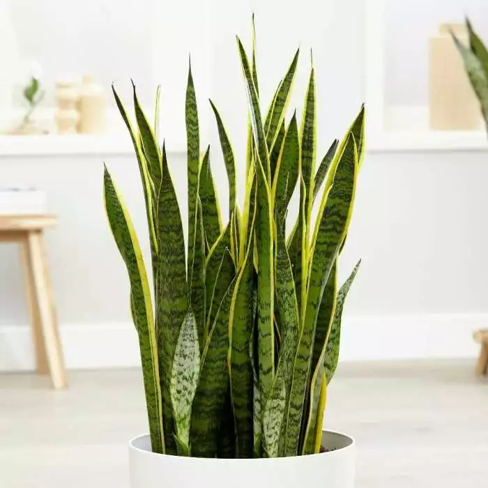 The easiest (and most forgiving) houseplant. Position: ideally bright, with some full sun, but will also tolerate shade Soil: good potting compost Rate of growth: slow Hardiness: tender (indoors only) Current height: approximately 90cm (+ or – 10% including the pot) Pot cover: choose a 35-40cm pot cover to give a good fit over the pot Mottled grey-green snake-like markings weave their way across long sword-like leaves. This award-winning houseplant has striking creamy-yellow margins. These robust plants can have a slightly weather-beaten appearance, sometimes with rough, brown edges and occasionally some minor leaf cracking can be seen. This does not affect the long-term health or vigour of the plant and simply adds to its charm! Please note that the pot in the photograph is not supplied with the plant (which is sent out in a simple nursery alternative), but we have a wide and wonderful range on our website to choose from Home care: Allow the soil to dry out completely before watering. Water thoroughly and allow to drain freely. Do not allow the plant to sit in water as this will cause root rot. In winter, reduce the frequency of watering and keep temperatures above 10°C. Repot every few years when the roots start to out-grow the pot.